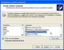 Se disponiamo di dischetti contenenti i driver della stampante, selezioniamo poi Disco driver che aprirà una finestra grazie alla quale potremo individuare i driver del produttore direttamente su dischetti o CD-ROM forniti.